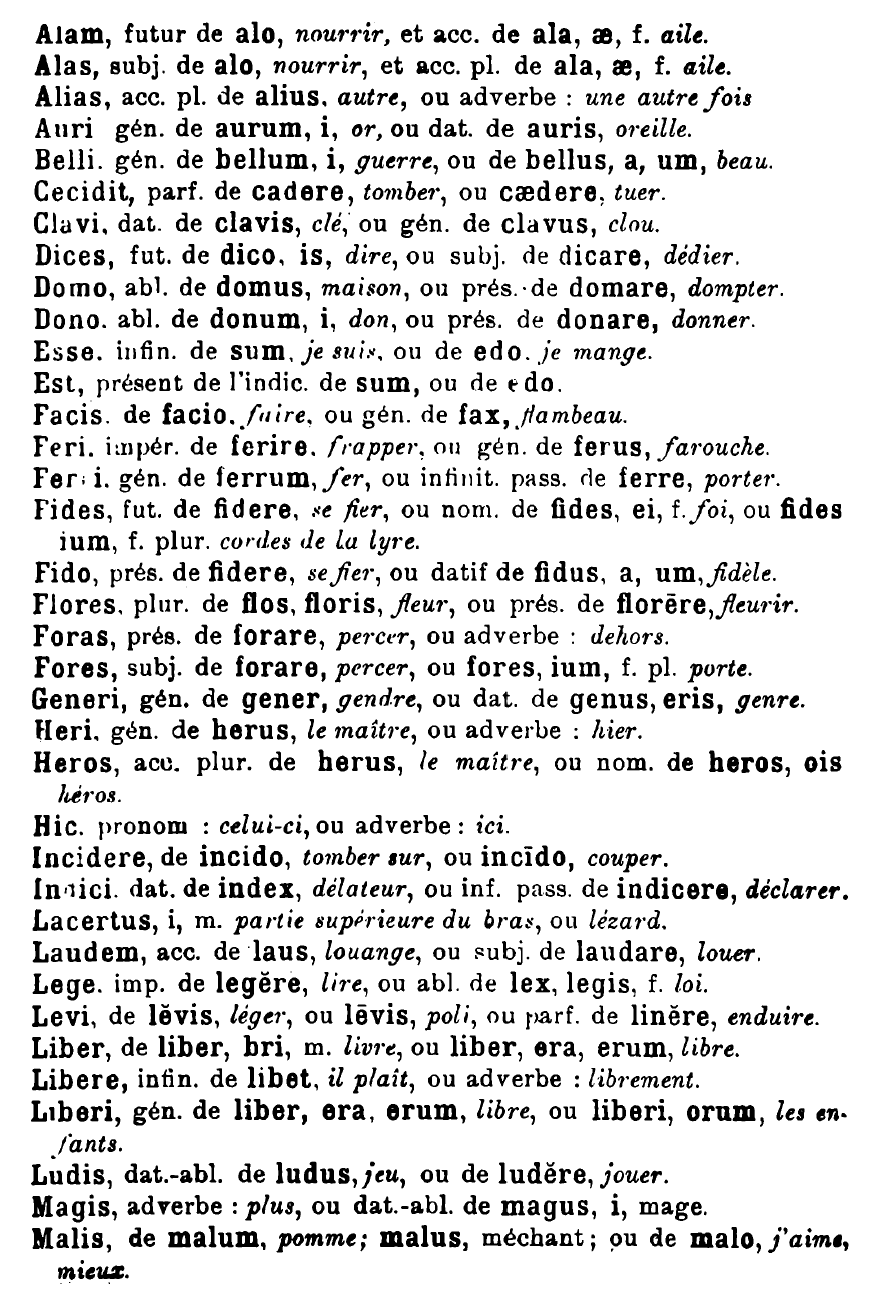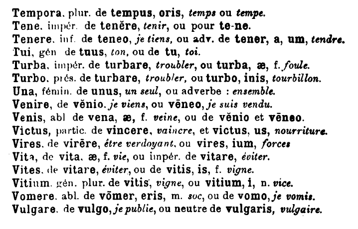 Henri Petitmangin propose, dans l’un de ses nombreux livres d’exercices latins, une liste de mots latins homographes pouvant mener à d’importants contre-sens ! Les voici.