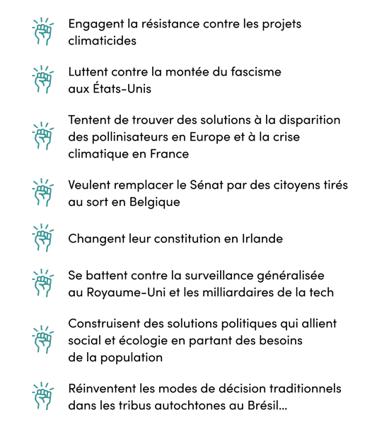 Avec “Démocratie maintenant !”, nous allons partir à la rencontre de celles et ceux qui, sur différents fronts :