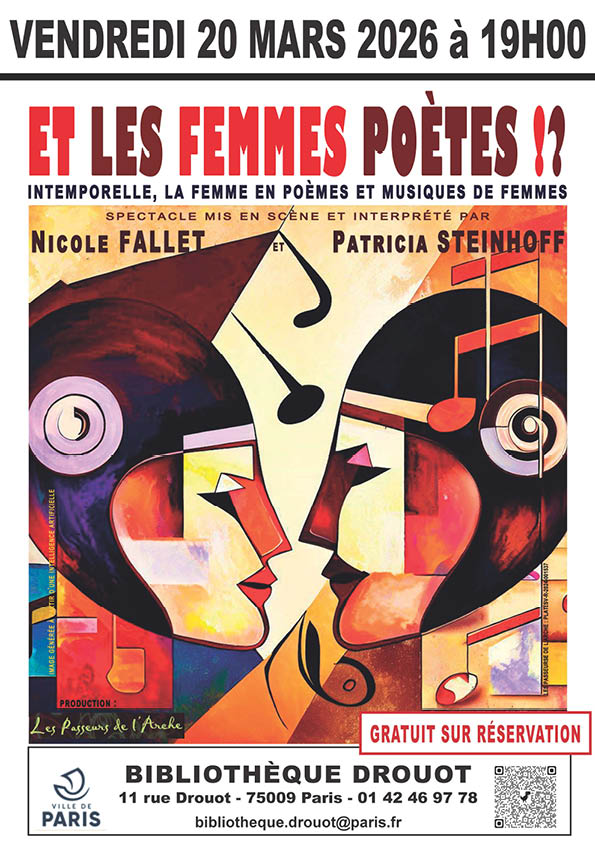 À l’occasion de la Semaine de la langue française et de la Francophonie sur le thème « Femmes et métamorphoses – La langue française mise à l’honneur dans les bibliothèques« , nous avons le plaisir de présenter notre spectacle à la bibliothèque Drouot.