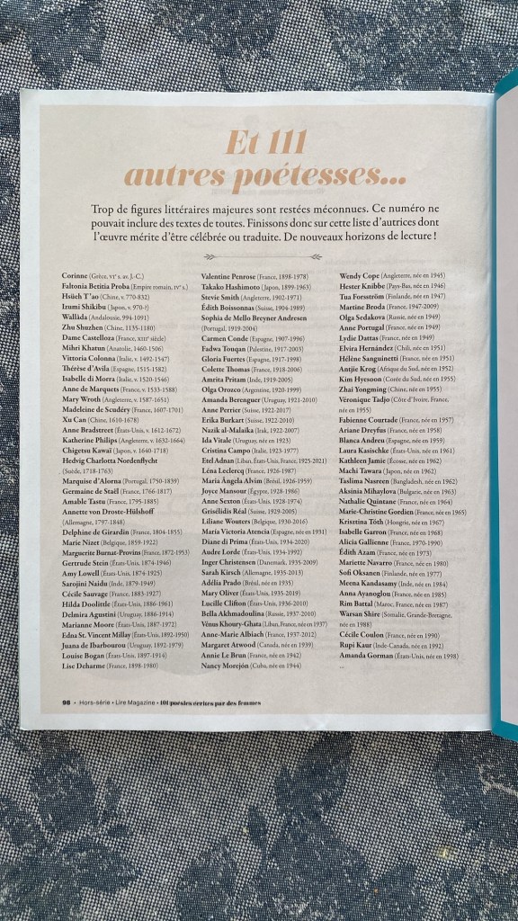 Collectif, Les plus belles poésies écrites par des femmes, Lire Magazine, hors-série, avril-mai 2024.